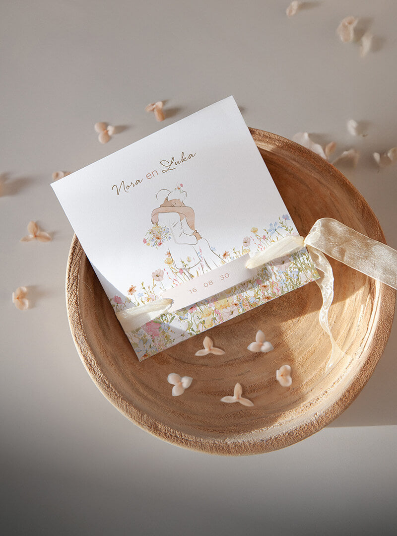 Dompel jezelf onder in de betoverende wereld van bruiloften met ons verfijnde briefpapier. Zeg ja in stijl met ons complete assortiment aanpasbaar briefpapier. Elke aankondiging, uitnodigingskaart, massaboekje, menu, bedankkaart... geeft de essentie van jullie liefde weer. Of uw dag nu romantisch, verfijnd of eenvoudig is, onze creaties maken elk moment onvergetelijk en uniek. Laat ons u vergezellen op dit avontuur waarbij elk woord uw verhaal weerspiegelt. Omdat jullie huwelijk veel verder gaat dan alleen het vieren, is het de start van een nieuw leven samen.