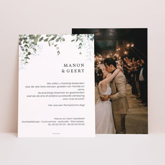 Bedankkaart Huwelijk PortretBloemen en eucalyptusNormale prijs Vanaf 1,31 €