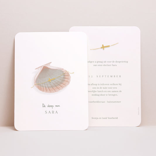 Doopuitnodiging Portret, afgeronde randenMeisjesblouse, Oiselle beigeNormale prijs Vanaf 1,31 €