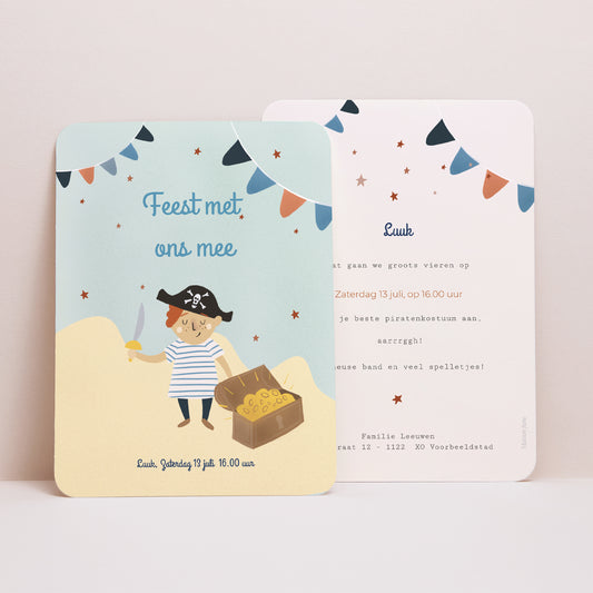 Uitnodigingen Kinderverjaardag Portret, afgeronde randenKleine piraatNormale prijs Vanaf 1,31 €