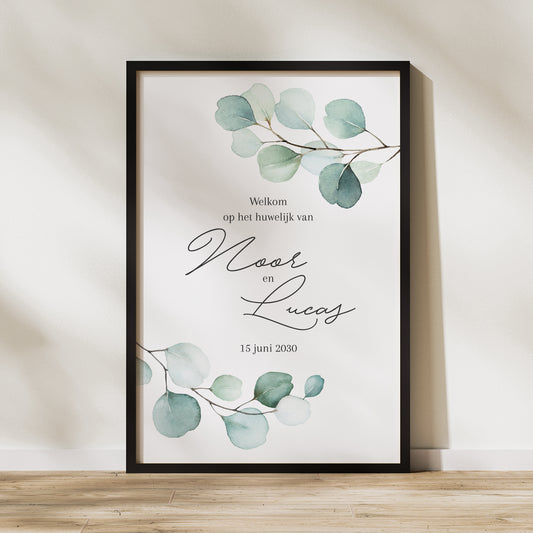 Welkomstbord Huwelijk Portret 60 x 90 cmEucalyptusbladerenNormale prijs Vanaf 26,90 €